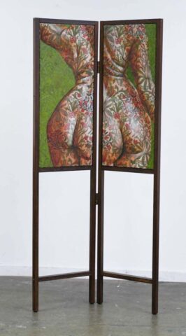 Schilderijen gemaakt met eigen ontwerp linnen doek. Productie en ontwerp doek in samenwerking met het Textiellab, Textielmuseum Tilburg. Afmetingen 120×160 cm